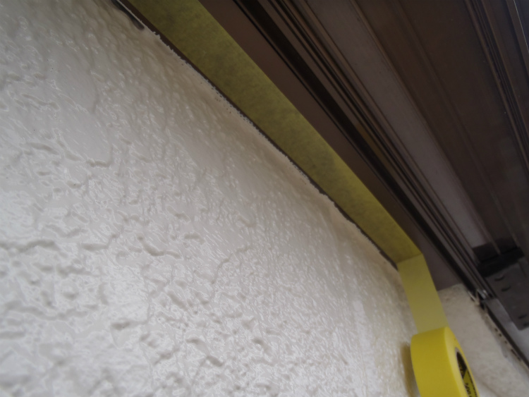 養生撤去後、サッシ廻りに塗料が付着している箇所や、塗料が滲んでいる箇所の掃除を行いまして、