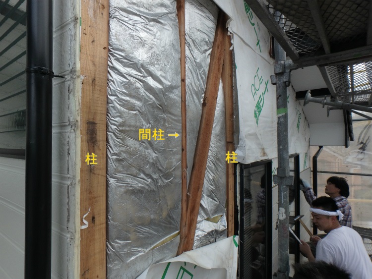 間柱の位置を修正するのは短時間ではチョット大変なので、間柱の横に助ける形で位置を合わせた下地を取付けを行います。