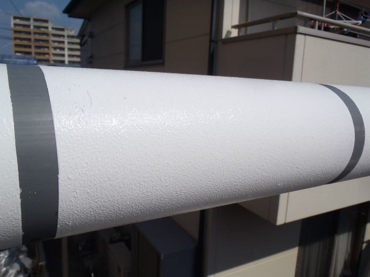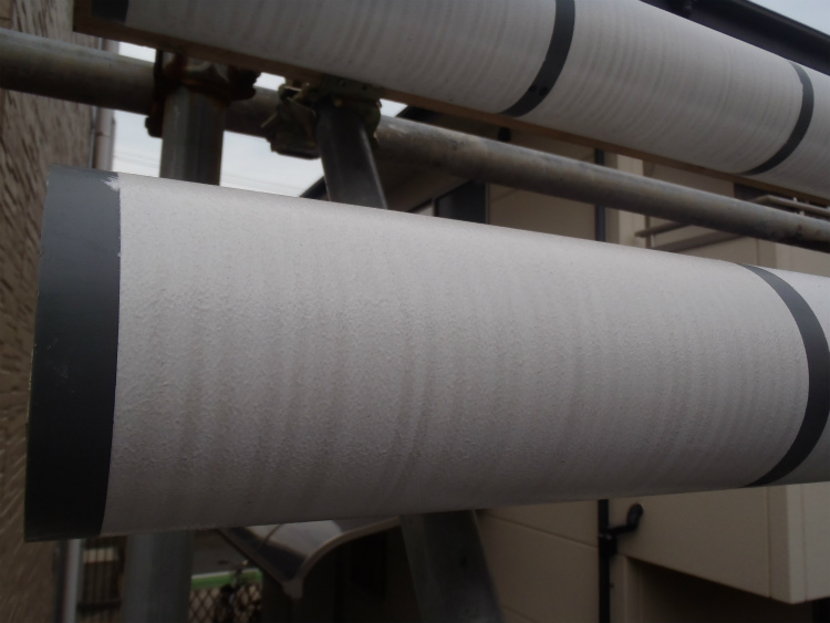 上段の塩ビパイプは多くの現場で使用される廉価品のアクリルシリコン樹脂塗料ですが、共に低汚染を謳っている「B」と「C」でもこれほどの性能差が生じてしまうことがわかります。